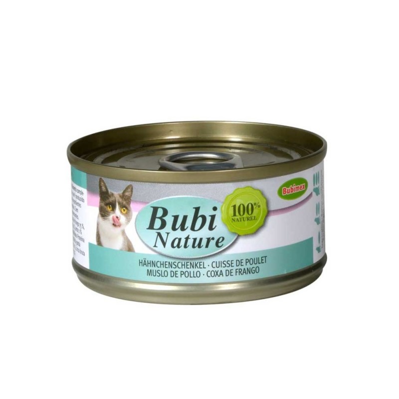 L'aliment BUBI NATURE Cuisse de Poulet de la marque Bubimex est une alimentation complémentaire saine sans conservateurs, sans colorants et sans arômes artificiels. Bubi Nature est un vrai régal pour les chats. Avec des ingrédients 100% naturels, cuit à l'eau afin de garder toutes les valeurs nutritionnelles, formulation très digeste. Les ingrédients ne sont pas transformés, mais conservés intactes. Cette alimentation peut être utilisée dans un régime peu calorique grâce à son taux de matières grasses très faible.