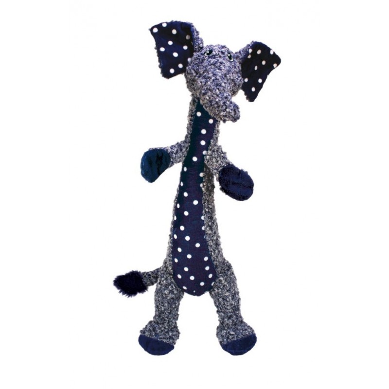 Le jouet Shaker Elephant de KONG est un jouet-peluche a forme allongée fait pour s'ébattre pendant les parties de secouer, de tirer, ou de lancer/rapporter. Il émet également un couinement grave qui appelle le chien au jeu.